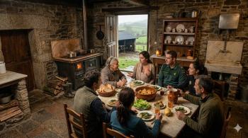 El ganado manda y la vida en la granja es muy atada. La abuela no pudo ir a la “jura de bandera”, ni de su hijo, guardia civil; ni de su hija, policía nacional. Debía cuidar las dieciséis vacas. En realidad, nunca toma vacaciones. No termina de descansar ni siquiera de noche. Ha de estar presente cuando las más preñadas traen terneros a esos establos de techo de uralita y mares de purín de por suelo. La madre, que no viaja más allá de la Galicia profunda, invita a cenar a los viajeros. La mesa de mármol está a uno y otro lado de la cocina “bilbaína” de hierro fundido. El vino se calienta por eso antes de llegar a la garganta. Lo mejor de su país y huerta llenará nuestros platos. Si mata a su gallina, habrás de “pecar”, dejar de ser por esa noche el raro vegetariano. Quisieras que esa velada, tan diferente de las habituales, no se acabara… |