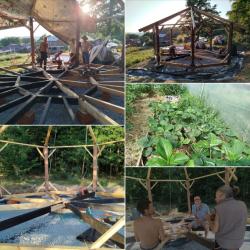 En última instancia estábamos aquí para intentar traer el Cielo a la Tierra. Por eso en Velouriz hemos construido en octógono. El cuadrado representa la Tierra, el mundo material, con sus cuatro puntos cardinales. El círculo representa el Cielo, lo divino, lo eterno, sin principio ni fin. El octógono (con ocho lados) es la forma intermedia entre el cuadrado y el círculo. Les he dejado a mis compañeros clavando tablas en medio del octógono, de ese símbolo de transición, resurrección, renovación y elevación espiritual. Algunos clavos entran de lleno y atrapan el intrincado pino. Otros yerran, se tuercen y hay que sacarlos. Poco a poco el proyecto avanza, con nuestros clavos torcidos, con nuestros fallos, con nuestras limitaciones, pero siempre con la mirada puesta en lo Alto, puesta aquí abajo… Siempre intentando ayudarnos y comprendernos cada día un poco más y así bajar más cielo a estas verdes praderas que la Vida nos entregó en custodia. |